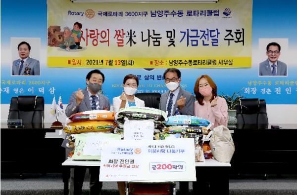 한편, 남양주수동로타리클럽은 ‘봉사로 삶의 변화를’이라는 정신으로 매년 관내 어려운 이웃들을 위한 나눔 활동을 지속적으로 펼쳐 오고 있으며, 국제로타리3600지구 제25년 차 지구 대회에서 대형클럽 최우수상을 수상하기도 했다.