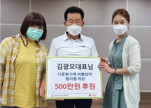 [한국뉴스타임=명기자] 남양주시 다산동에 거주하는 김광오 후원자가 13일 남양주시복지재단 산하 서부희망케어센터에 다문화가족 여름방학 나들이를 위한 사업비로 500만원을 기탁했다.