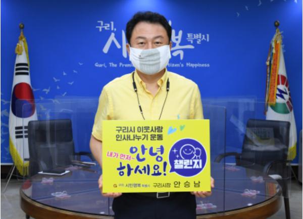 이에 대해 안승남 시장은 “개인주의가 팽배해짐에 따라 이웃 간의 소통 부재 등으로 사회문제가 빈번하게 발생되고 있는데, 구리문화원에서 시작한 이웃 간 인사 나누기 챌린지는 매우 의미가 있다고 생각한다”며,“작은 캠페인이지만 개인과 가정, 각 단체로 확산되어 먼저 다정하게 인사를 주고 받는다면, 서로 소통하고 배려하는 구리시를 만들 수 있을 것이며, 저를 포함한 구리시 공직자 모두가 적극적으로 챌린지에 동참하여 인사 나누기 문화를 이끌어 나가겠다”고 밝히며 챌린지를 이어 나갔다.