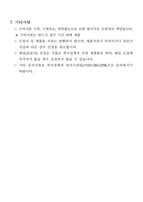 이에 지난 16일 가평군은 홈페이지를 통해 토론회의 패널(토론자) 모집 공모 공고를 하였다.