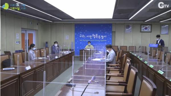 코로나19 사회적 거리두기를 감안하여 최소인원으로 개최된 가운데, 용역사인 (사)녹색에너지전략연구소 김윤성 박사가 연구용역 최종 보고자료를 발표하였으며, 유튜브 실시간 방송을 통해 지난 1월 「그린뉴딜, 구리」 실천 협약을 체결한 450여개의 단체장들과 함께 정보를 공유하였다.