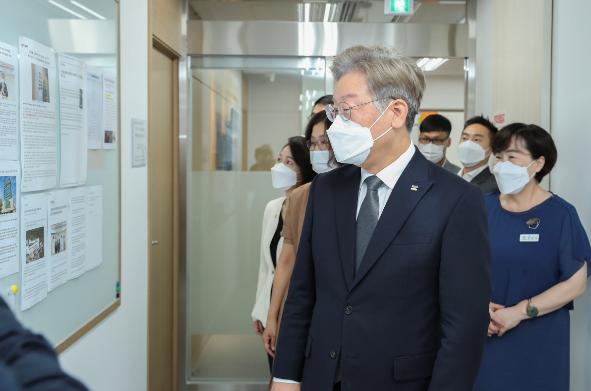이재명 지사는 이날 오전 수원시 경기도 인재개발원에 위치한 경기도 디지털성범죄 피해자 원스톱 지원센터를 방문해 현장 종사자들을 격려하고, 정정옥 경기도여성가족재단 대표이사와 백미연 경기도 디지털성범죄 피해자 원스톱 지원센터장 등 관계자들과 환담을 나눴다.