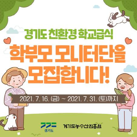 [한국뉴스타임=명기자] 경기도와 경기도농수산진흥원이 오는 31일까지 ‘경기도 친환경 등 우수농산물 학교급식 학부모 모니터단’ 500명을 모집한다.