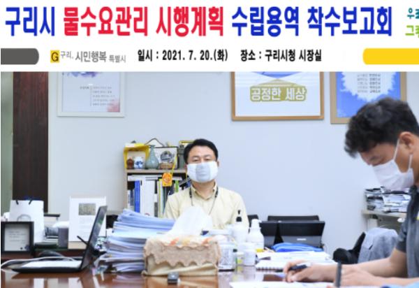 [한국뉴스타임=명기자] 안승남 구리시장은 20일 시청 시장 집무실에서 관련 공무원과 용역 업체 직원 등 10여 명이 참석한 가운데 수도사업의 효율성을 높이고 안정적인 물 수요 관리 강화 방안 마련을 위한‘구리시 물 수요 관리 시행계획 수립용역’착수보고회를 가졌다.