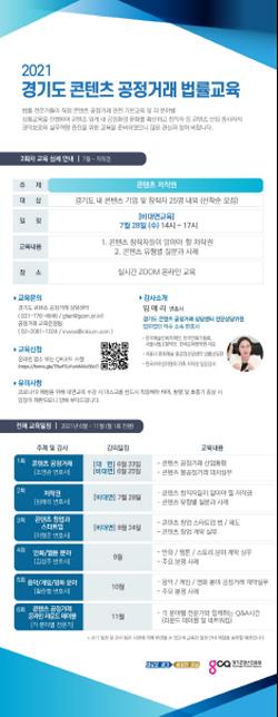 7월 교육은 28일 오후 2시부터 5시까지 진행되며, 경기콘텐츠진흥원 누리집 또는 온오프믹스(모임 플랫폼)로 온라인 접수하면 된다. 회차당 선착순 25명씩 모집하며, 도내 콘텐츠 산업 종사자뿐만 아니라 관심 있는 경기도민 누구나 무료로 수강할 수 있다. 회차 교육 일정 등 자세한 내용은 경기콘텐츠진흥원 누리집 또는 전화로 문의할 수 있다.