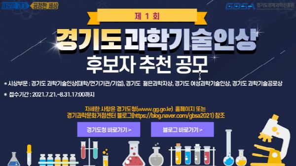 후보자 추천 접수는 21일부터 다음 달 31일까지 진행되며, 1․2차 심사를 거쳐 최종 선정된 과학기술인상 수상자들은 10월 말에 예정된 경기과학축전의 시상식에서 수상하게 된다.