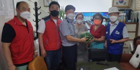 [한국뉴스타임=명기자] 동두천시 생연2동행정복지센터는 지난 20일 동두천농협으로부터 후원 받은 수박 20통을 중복을 맞이해 생연2동 관내 경로당 10개소에 전달했다고 밝혔다.