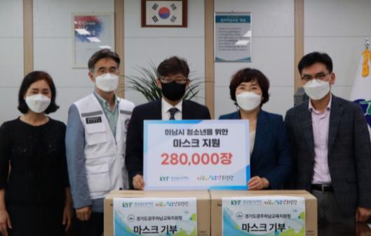 [한국뉴스타임=명기자] 하남시청소년수련관은 20일 오후 경기도광주하남교육지원청을 방문해 코로나19 예방을 위한 마스크 28만 장을 한정숙 교육장에게 전달했다.