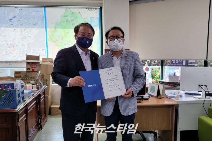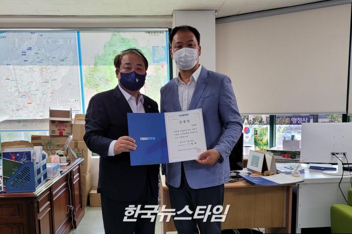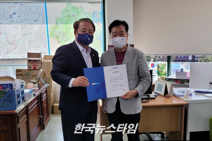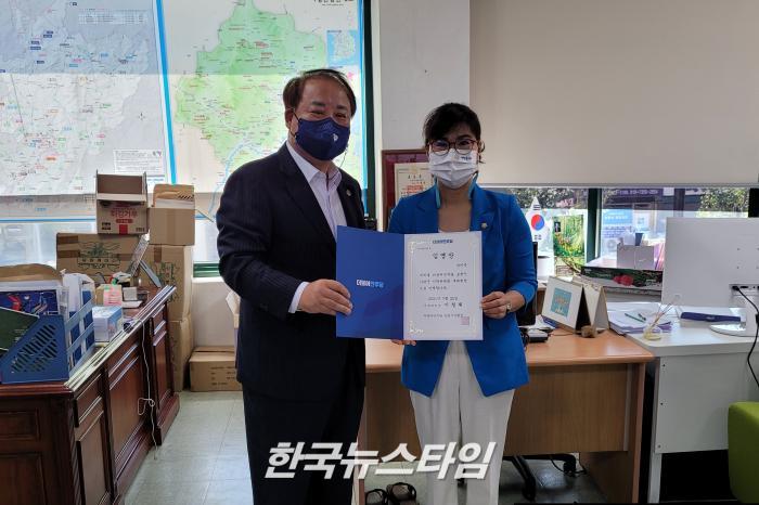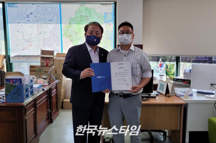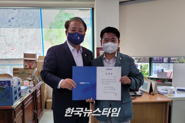 [한국뉴스타임=이명수기자] 24일 더불어민주당 포천가평지역위원회 이철휘 위원장는 민주당 가평군 지역위원회 당직자 임명장 수여식을 포천시 지역사무실에서 진행하였다.