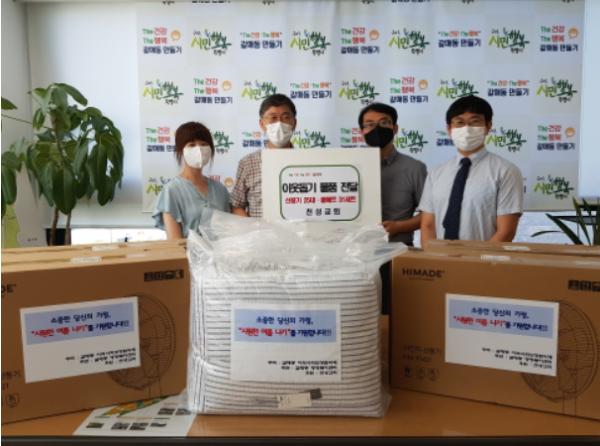 천성교회로부터 후원받은 선풍기 25대와 쿨매트 31세트(총 280만원 상당)는 갈매동 폭염 취약계층 56가구에 전달될 예정이다