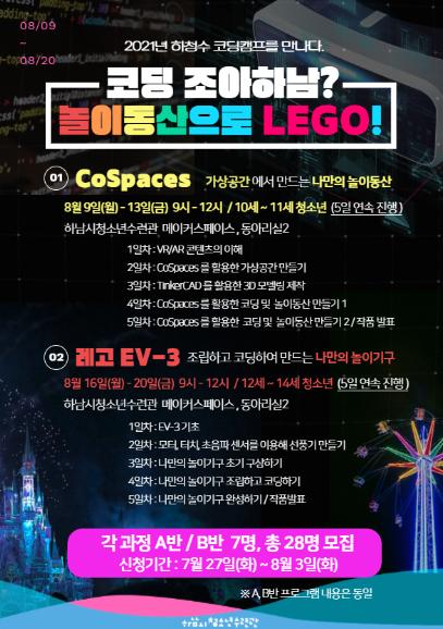 [한국뉴스타임=명기자] 하남시청소년수련관은 2021년 여름방학 코딩캠프 ‘놀이동산으로 LEGO!’ 프로그램 참가자를 모집한다고 26일 밝혔다.