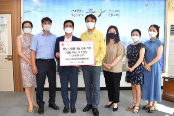 [한국뉴스타임=명기자] 하남시는 지난 26일 하남시학교운영위원협의회(회장 이정면)에서 100만원 상당의 덴탈 마스크 1만 장을 기탁했다고 밝혔다.