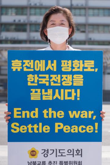 문경희 부의장은 ‘휴전에서 평화로, 한국전쟁을 끝냅시다!(End the war, Settle Peace!)’라는 문구가 담긴 팻말을 들고, “종전선언을 통해 오랜 시간 지속된 남북 간 적대관계를 청산하고, 항구적인 한반도 평화체제 구축을 통해 새로운 화합과 평화의 시대를 함께 가길 희망한다.”고 말했다.