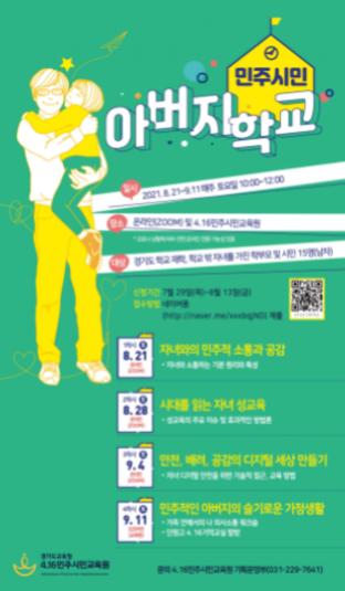 ‘민주시민 아버지학교’는 ▲민주적 소통, ▲자녀 성교육, ▲안전·배려·공감의 디지털 세상, ▲슬기로운 가정생활 등을 주제로 8월 21일, 8월 28일, 9월 4일, 9월 11일 모두 4차례에 걸쳐 진행된다.