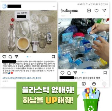 7월 한 달간 진행된 가정 내 플라스틱 쓰레기 저감 및 홍보활동 ‘플라스틱 없애줘! 하남을 UP해줘!’는 70여 명의 자원봉사자가 동참했으며, 비대면 플라스틱 환경정화 캠페인 ‘그냥 오다 주웠다’ 활동에는 110여 명의 시민들이 참여해 관내 쓰레기 줍기 및 플라스틱 모니터링 활동을 실시했다.