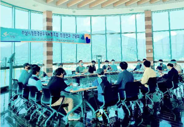 [한국뉴스타임=명기자] 김상호 하남시장은 지난 28일 하남유니온타워 4층에서 시 환경공무직노동조합 임원진과 간담회를 갖고, 노동환경 개선방안 등을 논의했다.