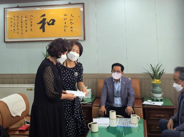 또한, 경기동부상공회의소 손영희 여성경제인협의회장은 “경기동부상공회의소 성희승 전 회장님과 CEO아카데미 총원우회, 8기를 포함한 모두가 함께 모은 마음이 조재숙 대표께 큰 위로와 힘이 되길 소망한다.”라고 위로했다.