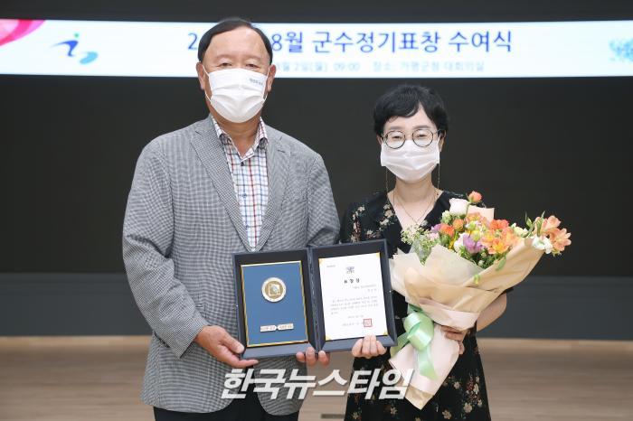 [가평뉴스타임=이명수기자] 2일 가평군 김성기 군수는 8월 정기표창 수여식에서 경기도지사 표창에 가평군청소년문화의집 최은진 청소년지도사를 표창 전수ㅘㅇ렸다.