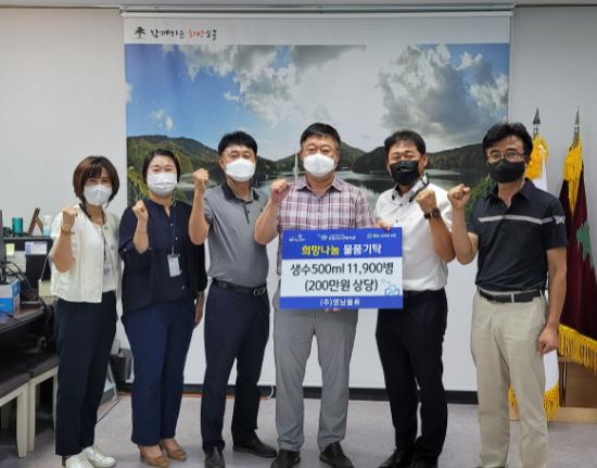 [한국뉴스타임] ㈜영남물류는 역대급 폭염으로 무더위에 지친 폭염 취약 주민들을 위해 7월 30일 생수 1만1900병을 지원했다.