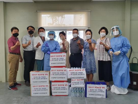 박승원 갈매동 주민자치위원장은 “폭염 속에서도 코로나19 확산 방지에 최선을 다해 주시는 갈매 선별진료소 의료진과 근무자들의 노고에 감사드리며, 이러한 수고에 조금이나마 보답하고자 방문하게 되었다.” 고 말했다.