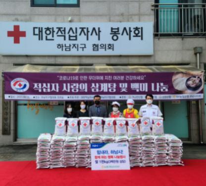이번 활동은 하남시 가나안신협, 동부신협, 선린신협에서 삼계탕 나눔을 위한 기부금을, NH농협 하남시지부에서 백미(10kg) 100포를 후원해 이뤄졌다.