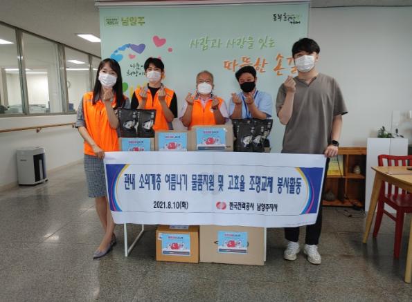 [한국뉴스타임=명기자] 한국전력공사 남양주지사는 남양주시복지재단 산하 동부희망케어센터를 통해 폭염취약계층을 위한 170만원 상당의 영양식 꾸러미 10세트를 지난 10일 전달했다.