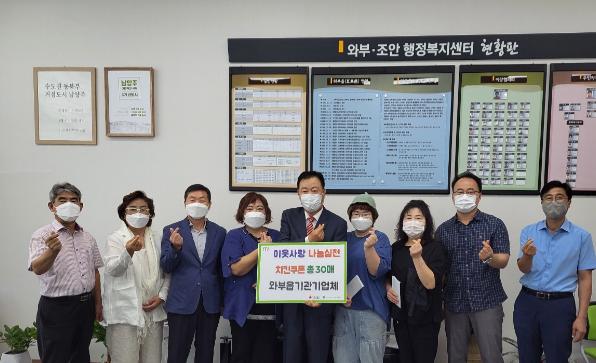 [한국뉴스타임=명기자] 남양주시 와부조안행정복지센터(센터장 심원철)에서는 13일 와부읍 소재 기관기업체 모임(회장 김광호)에서 아동들을 위한 치킨 쿠폰 30매(총 60만원 상당)를 후원했다고 밝혔다.