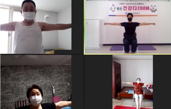 ‘랜선 건강다줌(ZOOM)’ 프로그램은 노쇠예방 관리사업의 일환으로, 화상채팅 앱 ZOOM(줌)을 활용해 건강·운동·영양 등을 다 주겠다는 의미를 담고 있다.