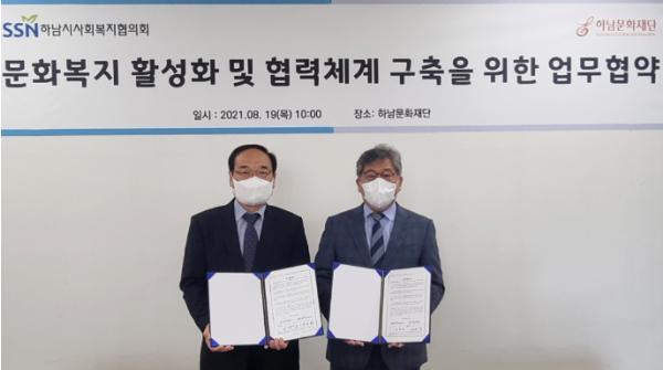 [한국뉴스타임=명기자] 하남문화재단과 하남시사회복지협의회가 지난 8월 19일 문화복지 활성화 및 복지 협력체계 구축을 위한 업무협약을 체결했다.