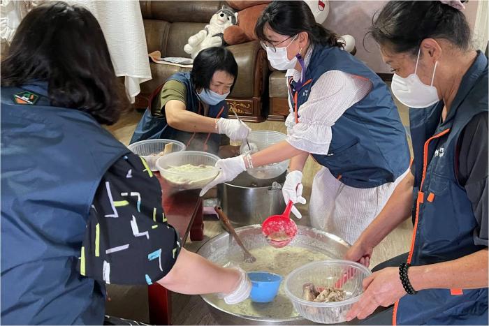 가평읍 지사협 위원들은 주식회사 도티락에서 후원받은 방목 흑돼지를 이용하여 직접 콩탕을 끓여 개별 용기에 담고, 마을 곳곳을 돌며 어르신 가구를 직접 방문하여 안부를 묻고 물품을 전했다.