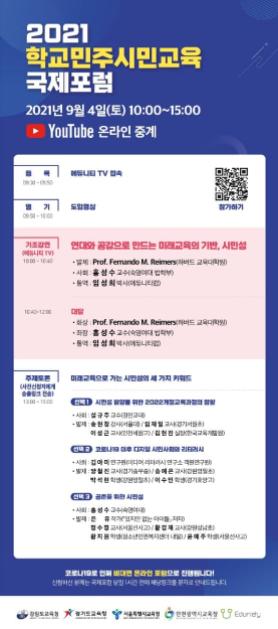[한국뉴스타임=명기자] 경기도교육청이 9월 4일 ‘2021 학교민주시민교육 국제포럼’을 개최한다고 25일 밝혔다.