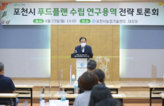 [한국뉴스타임=명기자] 포천시는 지난 23일 농업기술센터 대강당에서 박윤국 포천시장을 비롯한 포천시의회 의장 직무대리 송상국 부의장과 농민 단체장 및 학교급식 관계자들이 참석한 가운데 ‘푸드플랜 수립 연구용역 전략 토론회’를 개최했다.