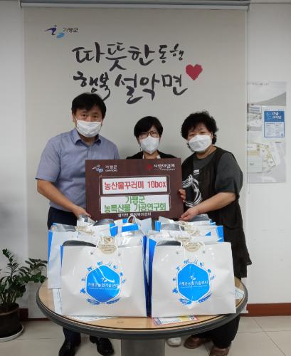 [한국뉴스타임=명기자] 지난 25일 오후 가평군 농특산물가공연구회는 설악면 행정복지센터를 방문해 농산물 꾸러미 10박스를 기탁했다.