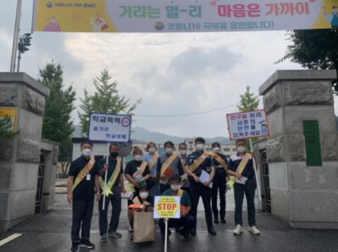 [한국뉴스타임=명기자] 신북면 청소년지도협의회는 지난 26일 신북면행정복지센터, 신북파출소와 함께 포천중학교 학생들의 하교 시간에 맞춰 학교폭력 예방 및 사회적 거리두기 민관합동 캠페인을 실시했다.