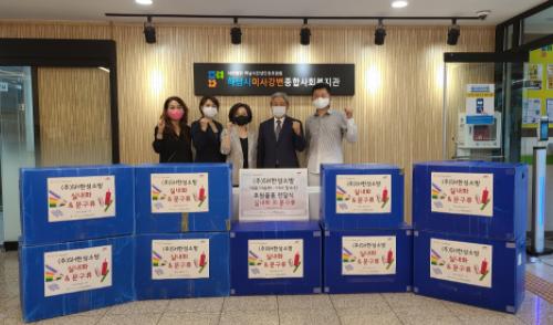 [한국뉴스타임=명기자] ㈜SH한성소방은 코로나로 어려움을 겪고 있는 지역주민들에게 전달해 달라며 하남시미사강변종합사회복지관에 실내화 외 32종의 문구류 약 1,000개를 전달하였다.