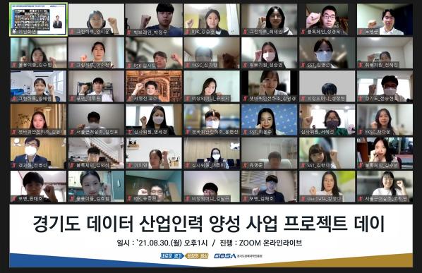 ‘프로젝트 데이’는 교육생들이 그동안 교육 과정에서 학습한 내용을 토대로 실제 데이터 분석을 통한 프로젝트를 수행해 결과를 발표하는 자리로, ‘경기도미래기술학교’ 데이터 산업인력 양성 교육의 취업준비 과정 교육생을 대상으로 진행됐다.