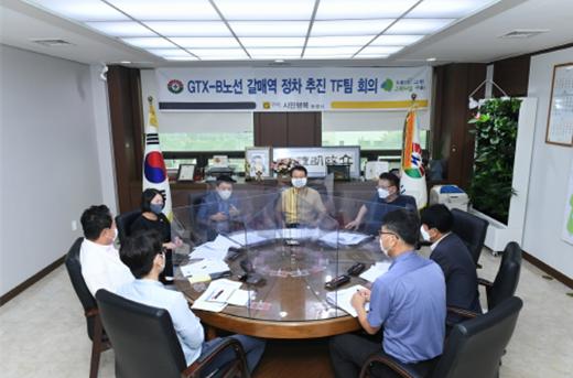[한국뉴스타임=명기자] 구리시는 30일 시청 민원상담실(3층)에서 안승남 시장을 비롯한 관계자들이 참석해‘수도권 광역급행철도(GTX) B노선 갈매역 정차 추진 TF팀’3차 회의를 개최했다.