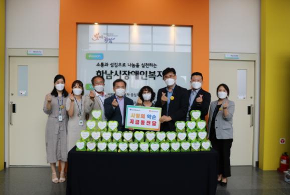 [한국뉴스타임=명기자] 하남시장애인복지관은 지난 1일 하남시약사회와 ‘사랑의 약속’ 저금통 전달식을 진행했다.