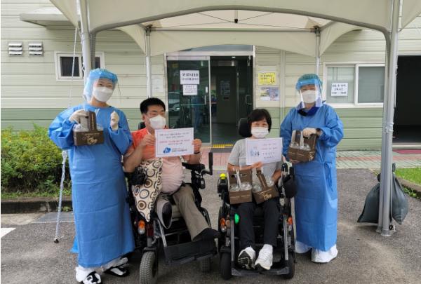 이번 커피 나눔은 바리스타 자격을 신규 취득한 중증장애인들의 주도로 이루어졌다. 이들은 중증 장애를 극복하고 지역 일꾼으로 꿈을 키우며 당당하게 살아가고 있는 사람들로 코로나19로 애쓰는 의료진들에게 감사의 마음을 전하고자 커피 기부를 준비했다.