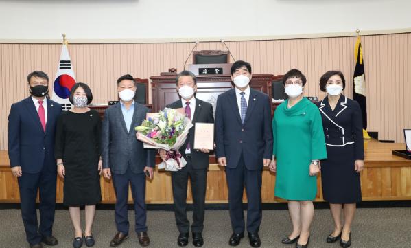 올해 8회를 맞는 이번 수상은 사회적 거리두기 4단계 시행에 따라 시상식을 생략하고 8일 구리시의회 본회의장에서 김형수 의장 전수로 자체 수여식을 진행했다.