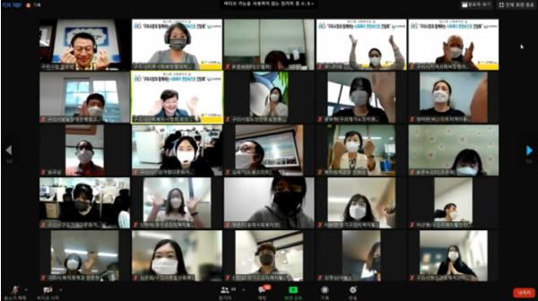 [한국뉴스타임=명기자] 구리시는 7일 「제22회 사회복지의 날」을 맞아 안승남 구리시장을 비롯한 사회복지 현장 실무자 50여 명이 참석한 가운데‘사회복지 현장 속으로’라는 주제로 구리시 지역사회보장협의체 주관으로 온라인 비대면 간담회를 가졌다.