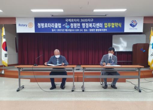 [한국뉴스타임=명기자] 9월 8일 청평면행정복지센터은 청평면지역사회보장협의체와 청평로타리클럽과 함께 관내 저소득 소외계층 지원을 위한 후원협약을 체결하였다.