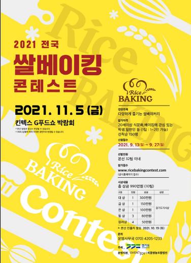 [한국뉴스타임=명기자] 경기도는 오는 11월 열리는 ‘2021 전국 쌀 베이킹 콘테스트’ 참가자를 13일부터 27일까지 모집한다.