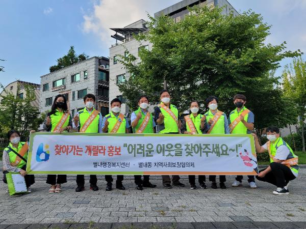 이날 별내행정복지센터 직원과 지역사회보장협의체 위원 그리고 북부희망케어센터 관계자 등이 참여해 취약계층 밀집지역을 순회하며 주변에 복지서비스를 안내하고 복지사각지대 발굴 캠페인 활동을 했다.