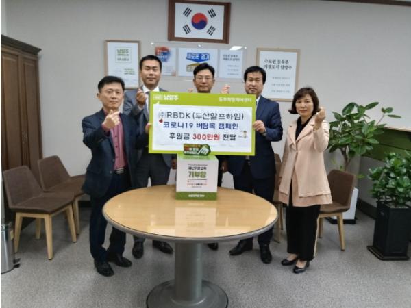 김병석 ㈜RBDK 대표는 “코로나19라는 재난상황에서 고통과 어려움을 겪고 있는 이웃들에게 조금이나마 보탬이 되길 바라는 마음으로 후원금을 기탁하게 됐다”고 말했다.