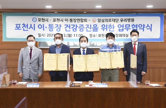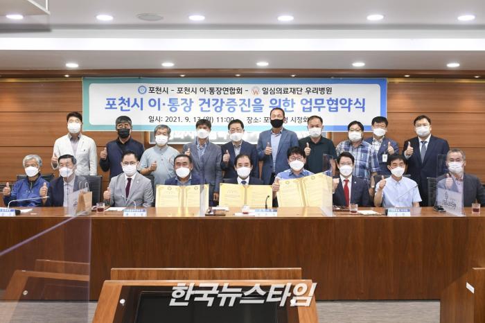 [한국뉴스타임=명기자] 13일 포천시(시장 박윤국)은 시청 시정회의실에서 ‘이·통장 건강검진 업무 협약식’을 개최했다.