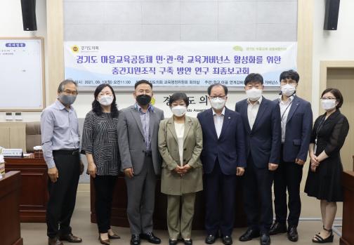 [한국뉴스타임=명기자] 경기도의회 의원연구단체인 ‘학교·마을 연계강화를 위한 교육거버넌스 연구회’는 13일 교육행정위원회 회의실에서 ‘경기도마을교육공동체 민·관·학 교육거버넌스 활성화를 위한 중간지원조직 구축방안 연구’에 대한 정책연구용역 최종보고회를 개최했다고 밝혔다.