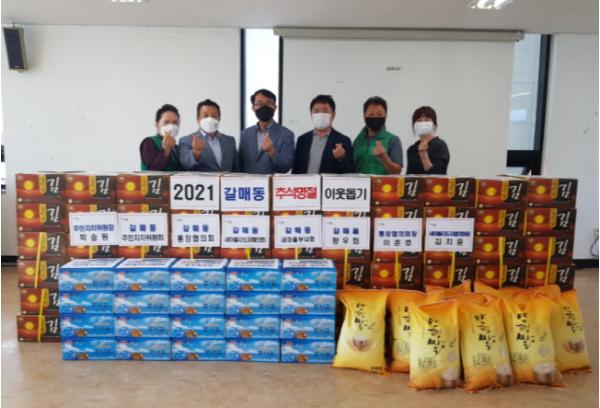 이번 전달식은 갈매동 주민자치위원회·통장협의회·갈매울향우회가 김 137상자를 새마을회·새마을부녀회에서 김 40상자를 후원했다.
