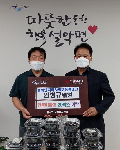 이번 안병규 위원이 기탁한 목이버섯 20박스는 설악면 행정복지센터에서 매월 진행하고 있는 행복끼니 행복릴레이 지원사업의 후원물품으로 선정되어 설악면 관내 거주하는 도움의 손길이 필요한 이웃에게 전달될 예정이다.