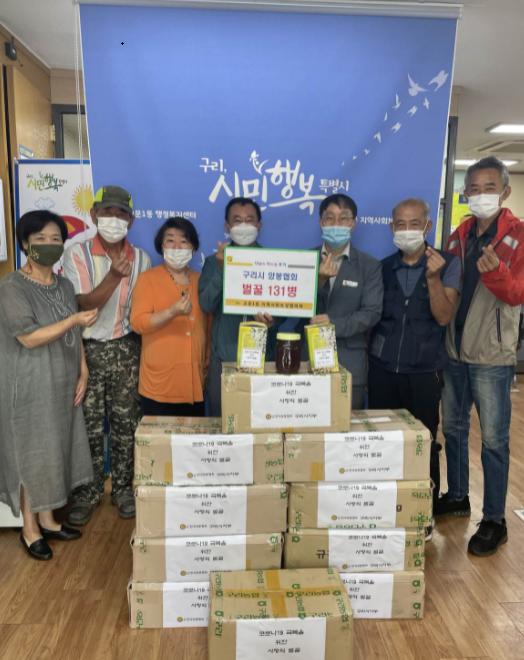 [한국뉴스타임=명기자] 구리시는 14일 교문1동 행정복지센터에서 구리시양봉협회 회원들이 독거 어르신을 위해 정성껏 준비한 벌꿀 131병의 전달식을 가졌다.
